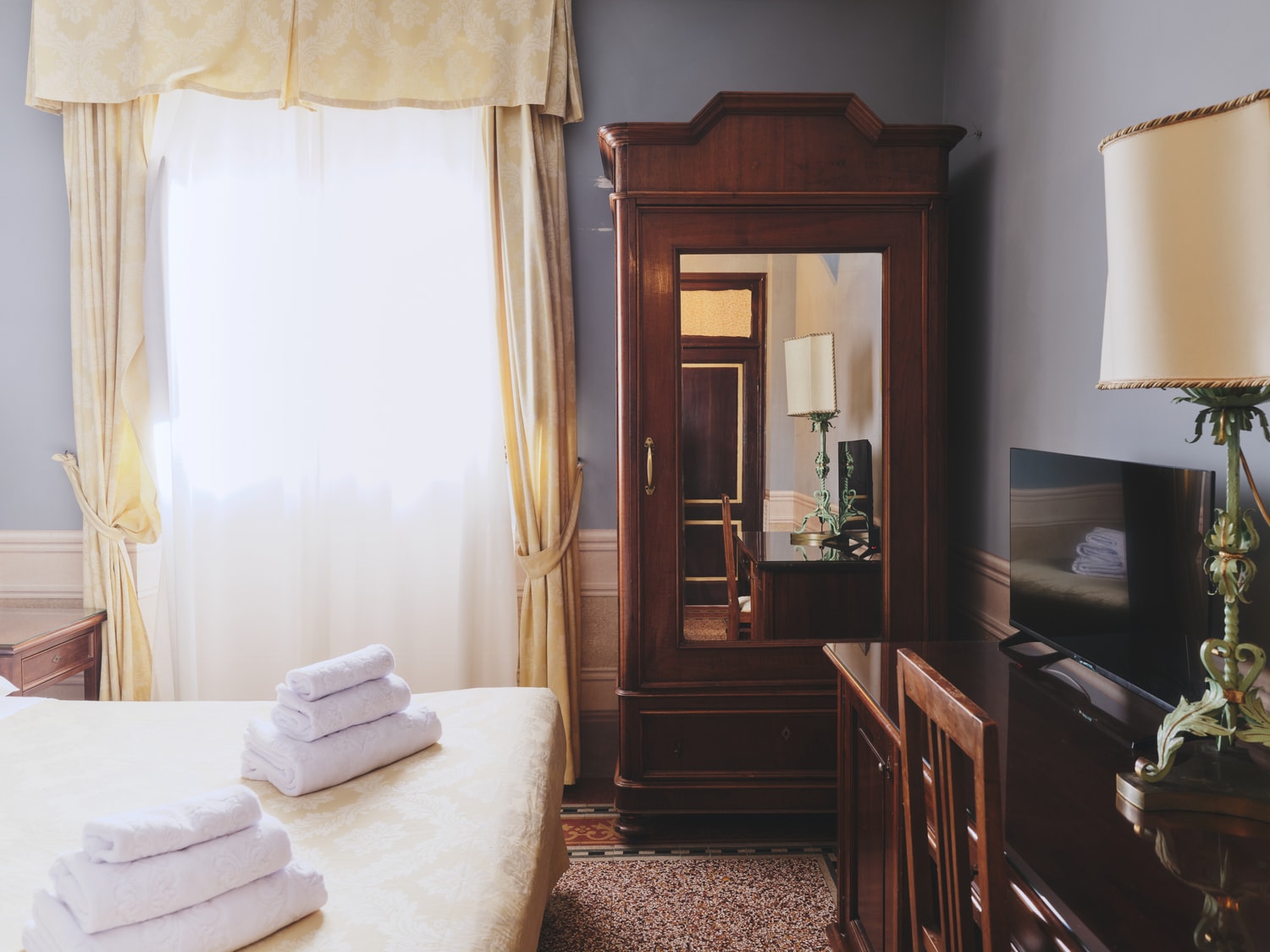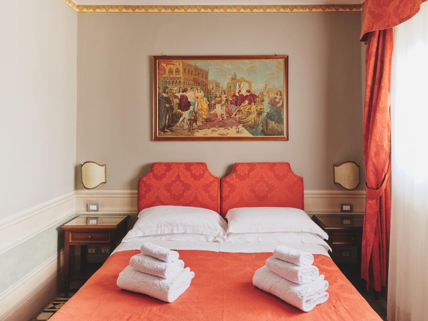 Le camere Deluxe combinano atmosfera classica e funzionalità moderna. Gli arredi eleganti e i dettagli decorativi creano un ambiente caldo e accogliente.