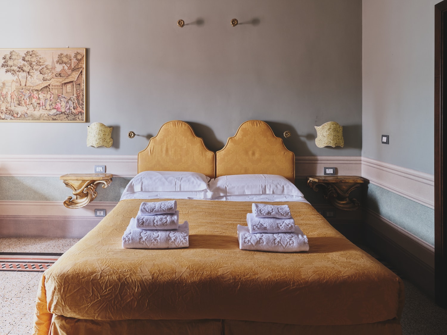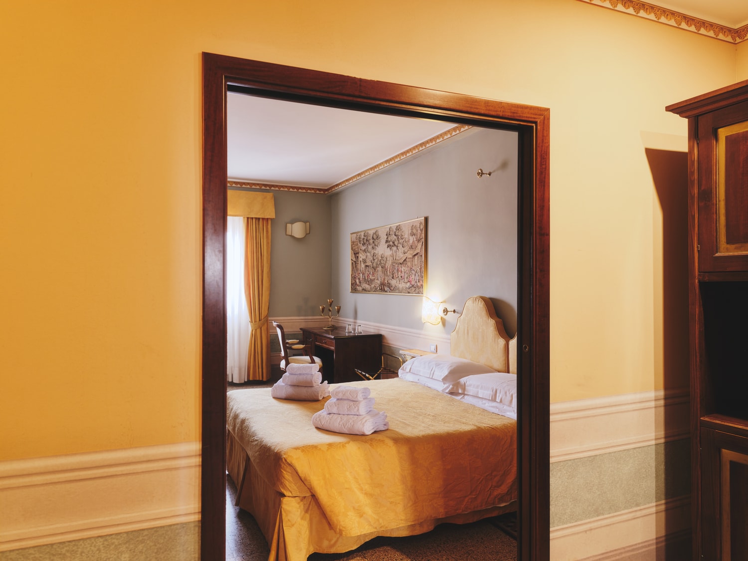 Le Suite rappresentano la massima espressione dello stile dell’hotel. Ambienti ampi, arredi classici di pregio e suggestivi letti con baldacchino rendono il soggiorno un’esperienza esclusiva.